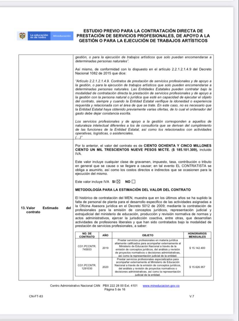 El Ministerio de Educación respondió ante la situación y explicó en detalle las funciones que cumplían sus contratistas, pero que aparentemente no fueron especificadas en los documentos.
