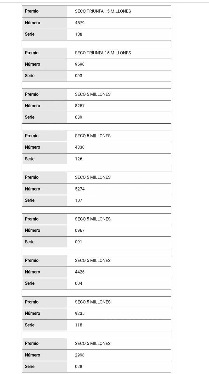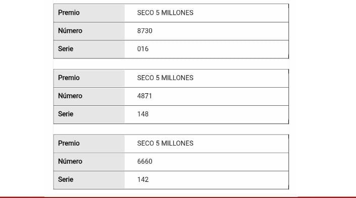 Consulte a continuación el resultado de los demás premios de la Lotería de Tolima: