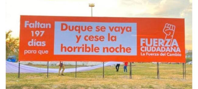 - La valla de Fuerza Ciudadana en el Magdalena: “falta poco para que Duque se vaya y cese la horrible noche”.