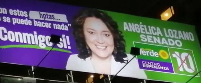 - La candidata al Senado Angélica Lozano, le sube el tono a los mensajes publicitarios: “Con estos hptas no se puede hacer nada, conmigo si”. ¿Será que el mensaje incluye a los alcaldes?