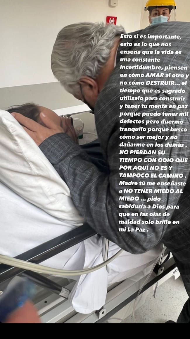 En las historias de Instagram también publicó una imagen de la señora Alba Mery Balvin, a quien se le ve con máscara de oxígeno y en una camilla.