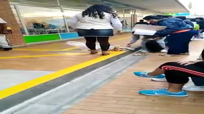 Un padre de familia denunció que los estudiantes tuvieron que hacer fila para recoger su refrigerio del piso en un colegio de Bogotá.