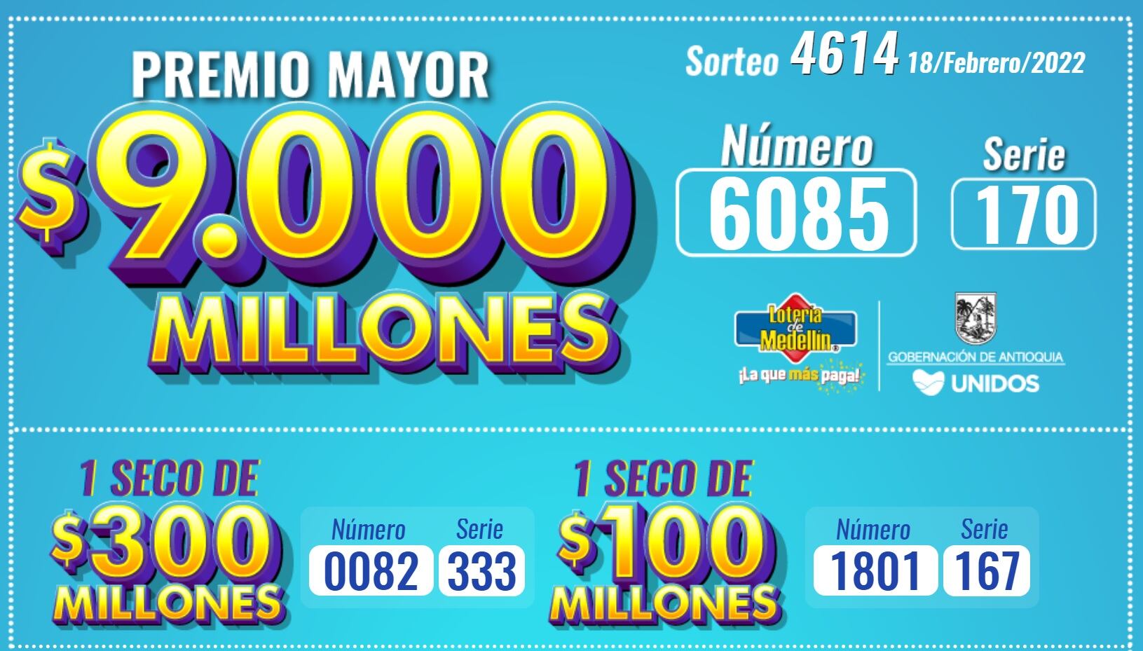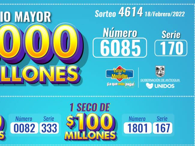 Entérese de los resultados del sorteo 4614 de la Lotería de Medellín del 18 de febrero de 2022.