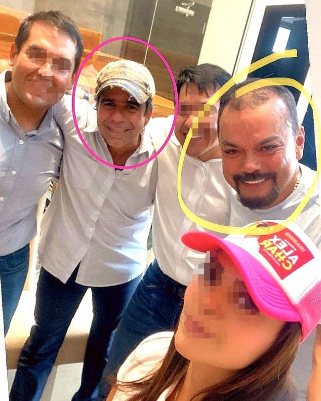 La fotografía del exalcalde de Barranquilla, Alex Char, y el exnarcotraficante es reciente. Así lo comprueba la gorra fucsia y blanca que luce la única mujer en la instantánea, cuyos colores distinguen la campaña presidencial del candidato de la coalición Equipo por Colombia con la frase “firme #AlexCharPresidente”.