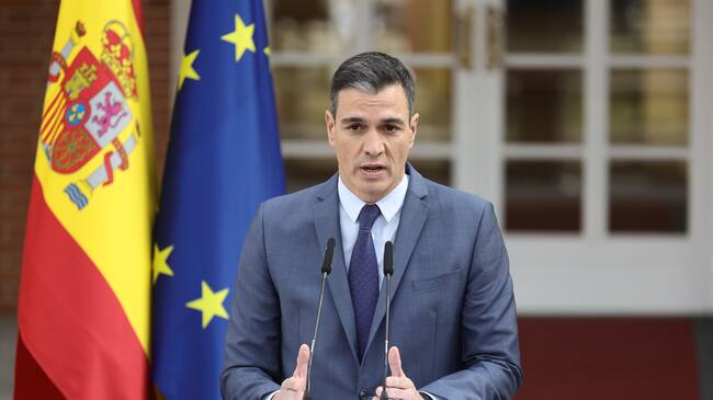 MADRID, SPAIN - FEBRUARY 24: The President of the Government, Pedro Sanchez, makes an institutional statement on the situation in Ukraine from La Moncloa Palace, on 24 February, 2022 in Madrid, Spain. The Prime Minister is traveling to Brussels this afternoon to attend an extraordinary summit of European leaders to discuss a joint response to the Russian attack on Ukraine. The statement comes after the meeting of the National Security Council chaired by King Felipe VI from La Zarzuela Palace to analyze the situation in Ukraine following the Russian attack. (Photo By EUROPA PRESS/E. Parra. POOL via Getty Images) / Europa Press News