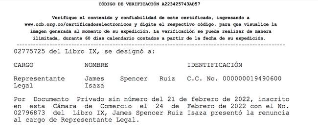 En medio de este escándalo, en febrero de este año James Spencer renunció a ser el representante legal de esta compañía y fuentes de Generación Zoe le contaron a La W que habría salido con maletas llenas de dinero desde la sede de Corferias.