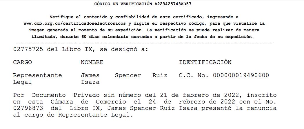 La W indagó sobre James Spencer, el hombre que está detrás de Generación Zoe en Colombia. El 24 de diciembre del año 2021, es decir en plena Navidad, Spencer constituyó oficialmente la empresa en Colombia llamada Escuela Empresarial de Coaching y negocios S.A.S. El registro de Cámara y Comercio James Spencer Ruíz Isaza aparece como representante legal y Leonardo Cositorto como principal accionista y miembro de la junta directiva.