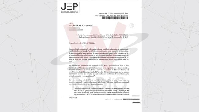 Esta es la transcripción de la carta de sometimiento de Luis Jhon Castro Ramírez ‘El Zarco’ ante la Jurisdicción Especial para la Paz, JEP: