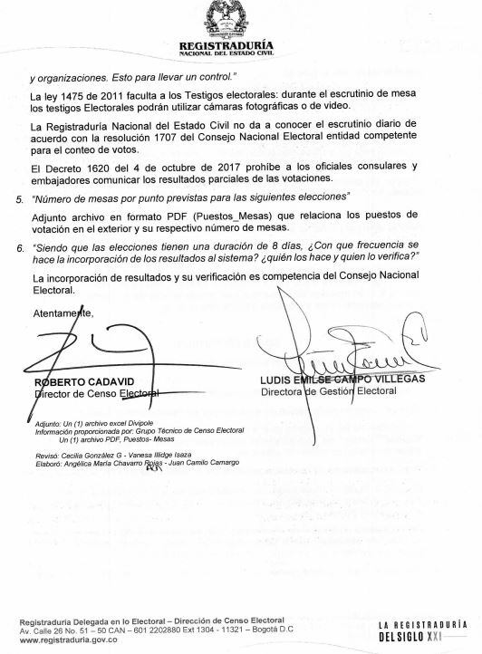 A continuación las imágenes del derecho de petición para la central de denuncias de Sigue La W y la respuesta de la Registraduría.