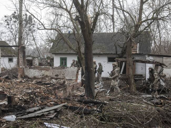 Miembros de las Fuerzas de Defensa Territorial de Ucrania caminan después de haber recuperado del ejército ruso la aldea de Nova Basan en el este de Kiev, Ucrania (Foto: Getty Imagenes) / Anadolu Agency