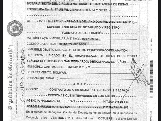 La W conoció que el hermano del empresario Carlos Mattos, Jorge Enrique Mattos, tomó en arriendo en octubre de 2017 una de las Islas de Rosario denominada como El Peñón con un canon de arrendamiento por 189.270 pesos, por 560 metros cuadrados. Convirtiéndose este en el canon más barato que se reporta en los registros de la Agencia Nacional de Tierras.
