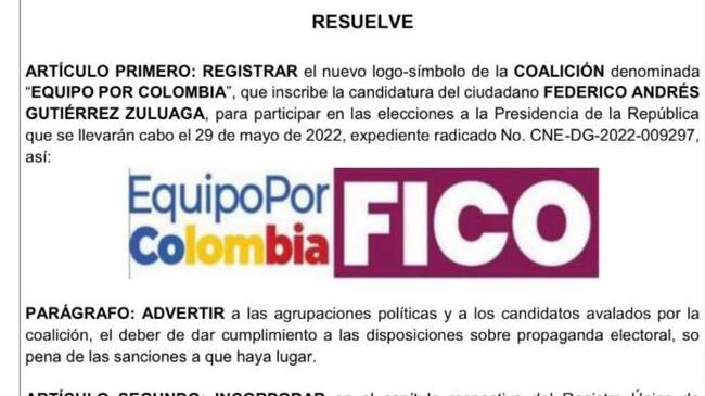 Sin embargo, el ‘Fico´ sí aparecerá en el logo del movimiento político del candidato del Equipo por Colombia.