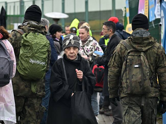MEDYKA, POLAND - APRIL 01: Refugees and volunteers are seen at Medyka border crossing as people pass through from war-torn Ukraine on April 01, 2022 in Medyka, Poland. More than 4 million people have fled Ukraine since the Russian invasion of that country on February 24, millions more have been internally displaced. (Photo by Jeff J Mitchell/Getty Images) / JEFF J MITCHELL