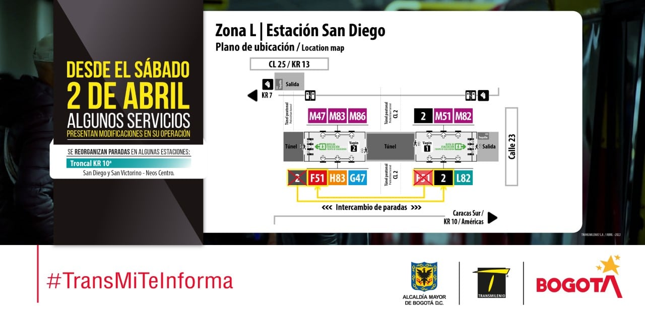 Conozca cuáles son los cambios en las estaciones de TransMilenio de San Diego y San Victorino Neos Centro.