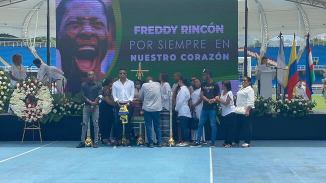 Tras estar en cámara ardiente en el estadio olímpico Pascual Guerrero, hacia las 4:00 de la tarde el féretro de Freddy Rincón fue llevado al Cementerio Metropolitano del Sur donde, en ceremonia privada, se dará sepultura.