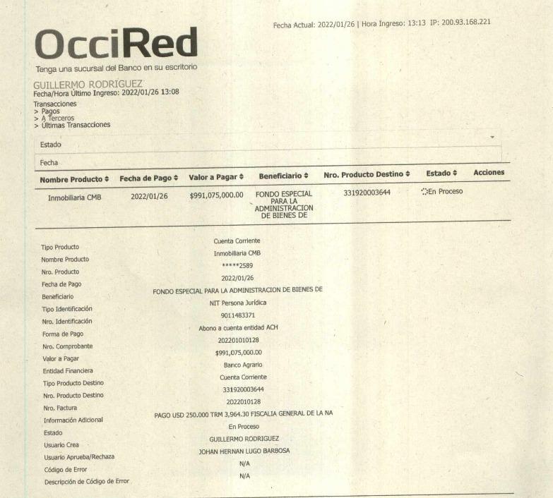 Esta emisora conoció un recibo en el que se deja constancia que Mattos alcanzó a consignar 991 millones de pesos.