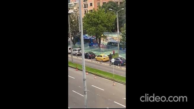 En un video quedó registrado como un vehículo, en la calle 100 en el norte de Bogotá, es interceptado por dos hombres que tratan de robar al conductor que se desplazaba por ese punto de la ciudad. El conductor del carro acelera y es cuando choca con un vehículo que está en la parte delantera.