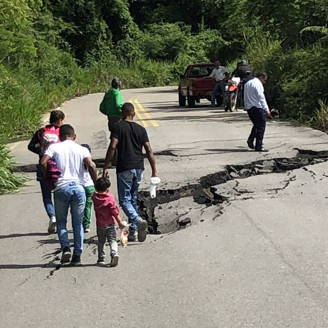 La vía San Vicente de Chucurí en la Hacienda La Fé se partió en pedazos. Hubo pérdida parcial de la banca.