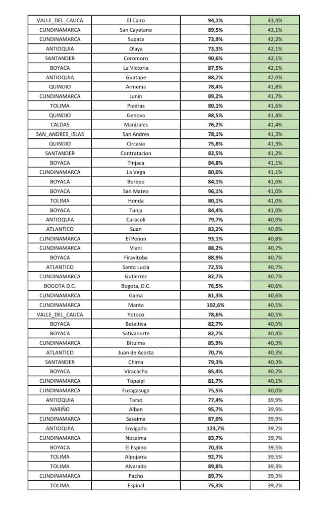 Conozca la lista completa de los municipios y el porcentaje de vacunación correspondiente: