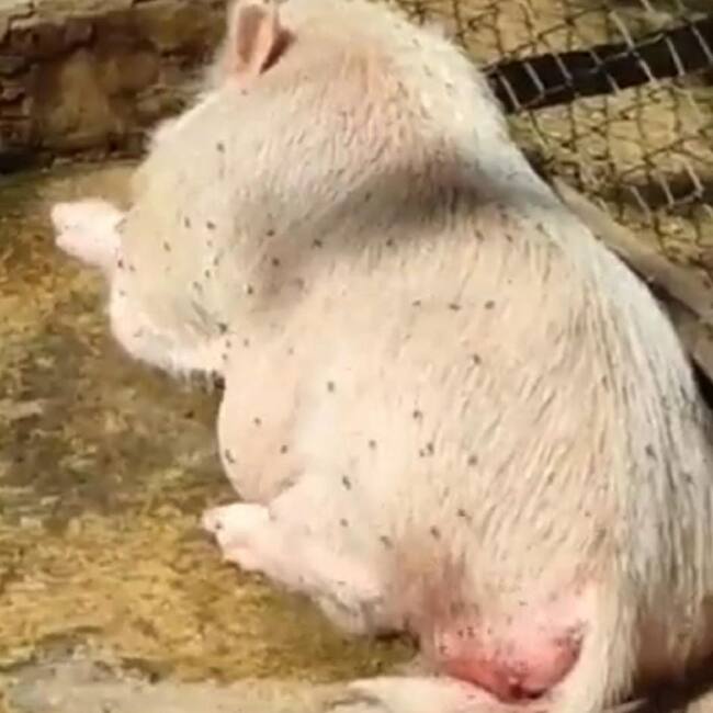 Por ejemplo, una pieza audiovisual que es desgarradora, muestra cómo un cerdo estaba lleno de moscas, su cola inflamada, y no se podía ni mover.