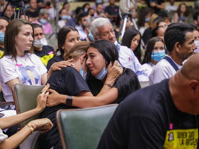 Los familiares de las víctimas, en su mayoría jóvenes de barrios populares que fueron engañados con promesas laborales, desaparecidos, torturados y asesinados por miembros del Ejército Nacional, y que posteriormente fueron presentados como guerrilleros, quebraron en llanto.