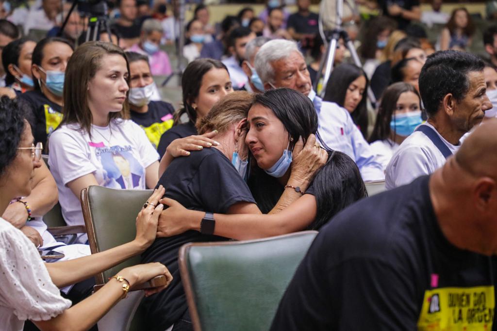 Los familiares de las víctimas, en su mayoría jóvenes de barrios populares que fueron engañados con promesas laborales, desaparecidos, torturados y asesinados por miembros del Ejército Nacional, y que posteriormente fueron presentados como guerrilleros, quebraron en llanto.