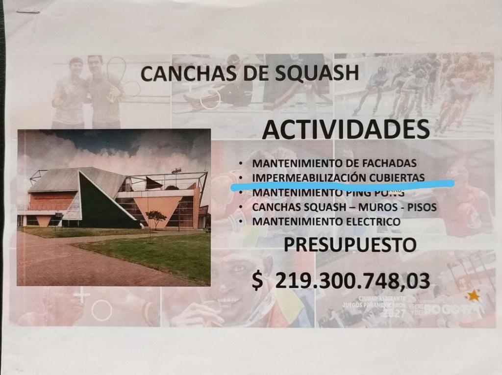 Cabe destacar que dichas obras estaban incluidas en el proyecto de arreglos que aprobaron para las canchas de squash por 219 millones de pesos en el contrato 048 de 2021.
