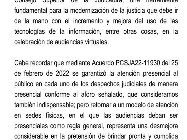 “... A partir de la pandemia nos hemos adaptado a una nueva forma de hacer las cosas que ha acercado a la gente a los jueces y ha mejorado sustancialmente la calidad del sistema judicial...”, dice el documento.