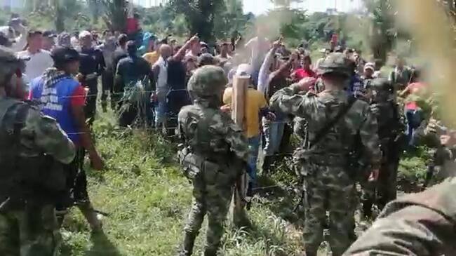 Campesinos impiden salida de soldados de la base militar en el municipio de Tibú. Foto: Cortesía