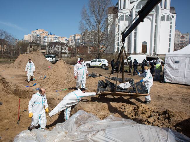 Fosa común en Bucha, Ucrania. (Photo by Anastasia Vlasova/Getty Images) / Anastasia Vlasova