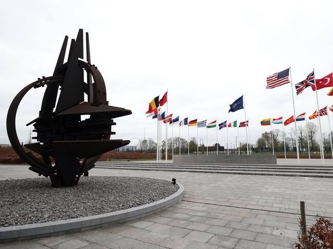 BRUSSELS, BELGIUM - APRIL 6: The flags of member countries of North Atlantic Treaty Organization (NATO) are seen ahead of NATO Foreign Ministers meeting at NATO Headquarters in Brussels, Belgium on April 6, 2022. (Photo by Dursun Aydemir/Anadolu Agency via Getty Images) / Anadolu Agency