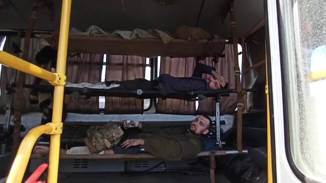 MARIUPOL, UKRAINE - MAY 17: A screen grab taken from a video released by Russian Defense Ministry shows Ukrainian soldiers are being evacuated from Azovstal steel plant in the port city of Mariupol, Ukraine on May 17, 2022. (Photo by Russian Defense Ministry/Handout/Anadolu Agency via Getty Images) / Anadolu Agency
