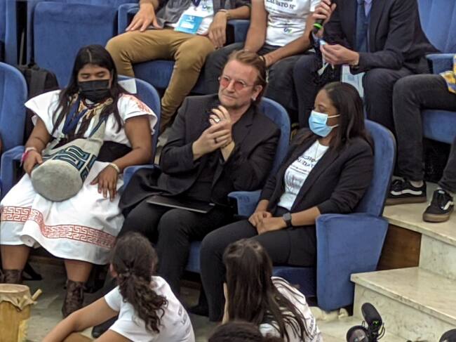 El líder de U2, Bono, en el evento del papa Francisco que anima a jóvenes a cuidar el planeta. Foto: Daniel Cáceres
