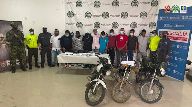 En los operativos se materializaron 8 capturas por orden judicial y dos en flagrancia. Se trata de Luis Fernando Argel Vergara, alias ‘Chocolate’, Jenifer Paola Mestra Santamaría, alias ‘Jennifer’, Luis Carlos Alemán Polo, alias ‘Bolita’, Orlando Ómar Espinoza Jiménez, alias ‘Coyote’, Richard José Julio Rivero, alias ‘Richard’; Ómar Antonio Reyes García, ‘Negro Ómar’, William Andrés Julio Sandón, alias ‘Bebé’, y Rafael David Naranjo Avilés, alias ‘Anuar’. En flagrancia fueron detenidos Carmelo Jesús Torres Espitia y Cristian Vertel Pérez.
