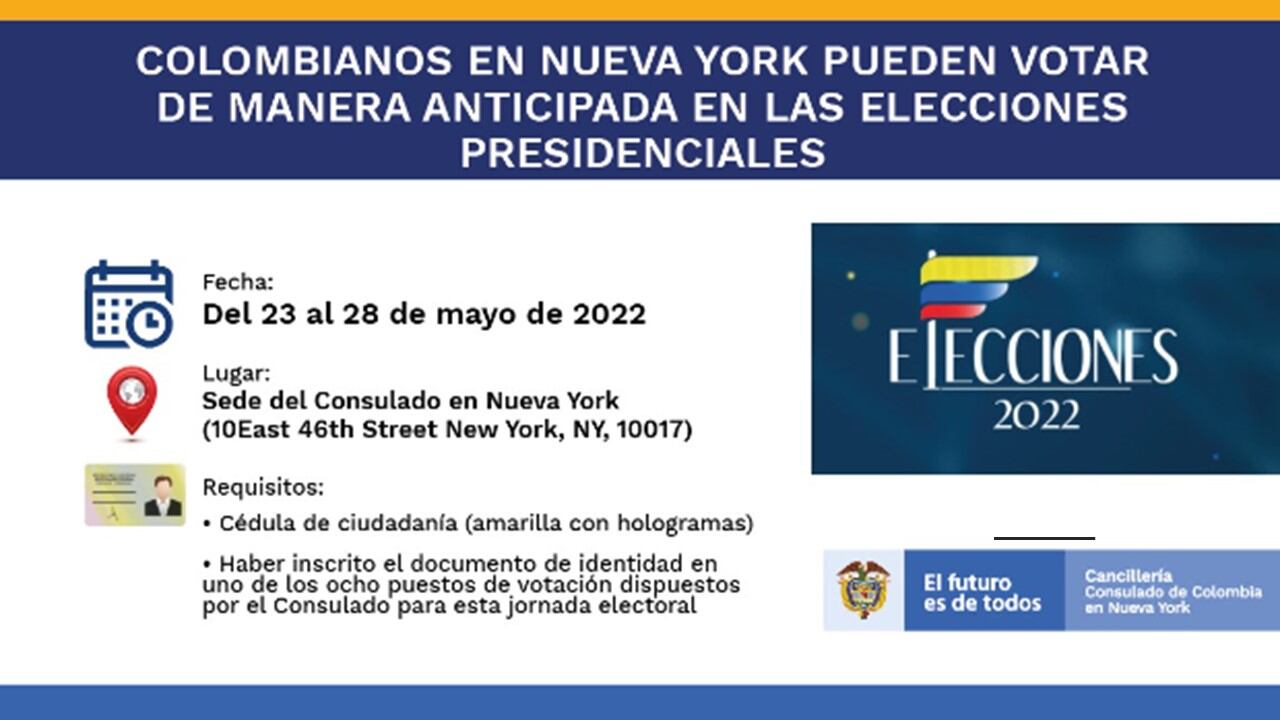 En el marco de las elecciones presidenciales anticipadas, el Consulado de Nueva York hizo un llamado a los colombianos para que participen voluntariamente como jurados de votación para los puestos de Queens y Manhattan.