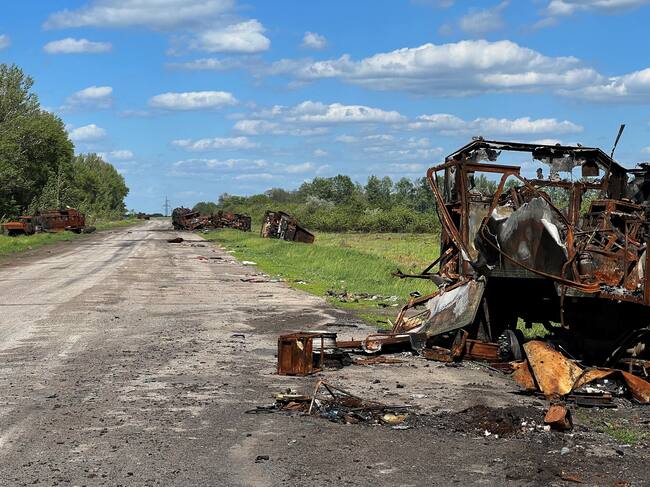 Imagen de referencia de los bombardeos rusos en la región de Járkov, Ucrania. (Photo by Patrick FORT / AFP) (Photo by PATRICK FORT/AFP via Getty Images) / PATRICK FORT