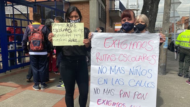Madres protestan por falta de rutas escolares en Bogotá. Foto: W Radio