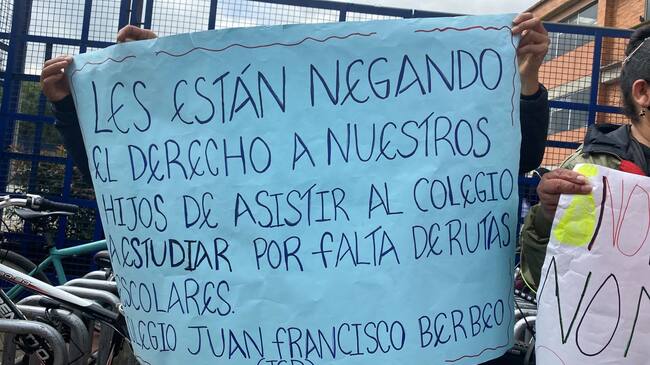 En la mañana de este lunes, madres de estudiantes del Colegio Juan Francisco Berbeo, en Bogotá, bloquearon y protestaron durante varias horas en la calle 80, generando afectación vial en vehículos particulares y en Transmilenio. La razón, aseguran es por la falta de rutas escolares desde hace más de 6 meses que está ocasionando inconvenientes para la asistencia de sus hijos a clases.