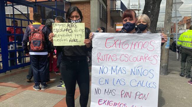Madres protestan por falta de rutas escolares en Bogotá. Foto: W Radio