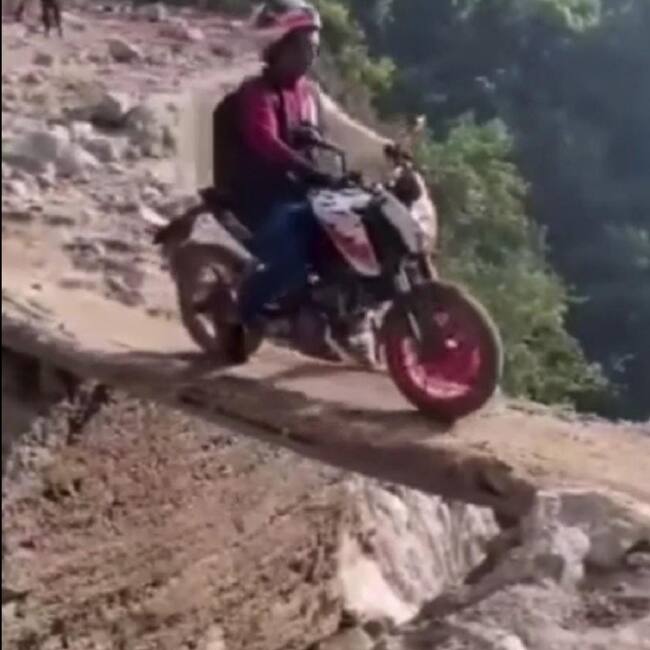 Un vídeo publicado en redes sociales que ha causado pánico en los cibernautas muestra cómo cuatro motos cruzan de lado a lado en el sector los canelos, jurisdicción de San Andrés, en la vía nacional Curos - Málaga, en donde hubo pérdida de banca en su totalidad tras una avalancha.