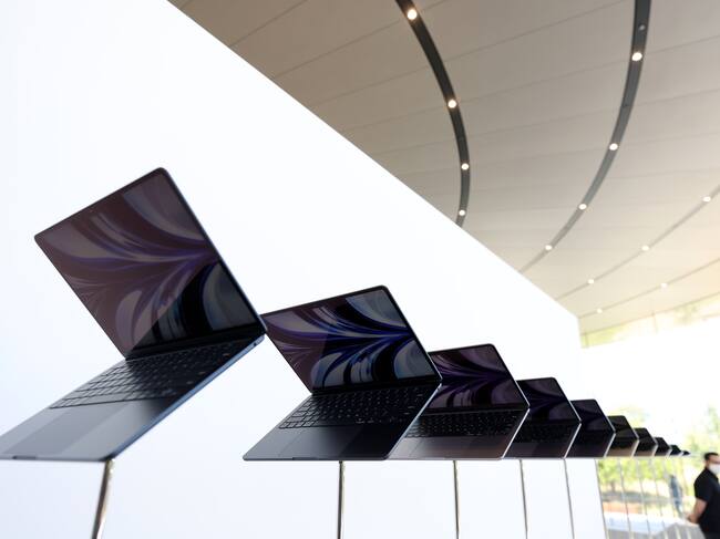 CUPERTINO, CALIFORNIA - JUNE 06: Newly redesigned MacBook Air laptops are seen displayed during the WWDC22 at Apple Park on June 06, 2022 in Cupertino, California. Apple CEO Tim Cook kicked off the annual WWDC22 developer conference. (Photo by Justin Sullivan/Getty Images) / Justin Sullivan