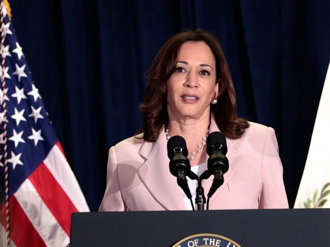 LOS ANGELES, CALIFORNIA - JUNE 07: U.S. Vice President Kamala Harris delivers remarks at the In Her Hands launch at the InterContinental Los Angeles on June 07, 2022 in Los Angeles, California. Vice President Harris took part in a series of events today at the IV CEO Summit of the Americas, which is the official private sector forum of the IX Summit of the Americas. Leaders from North, Central and South America will travel to Los Angeles for the summit to discuss issues such as trade and migration. The United States is hosting the summit for the first time since 1994, when it took place in Miami. (Photo by Anna Moneymaker/Getty Images) / Anna Moneymaker