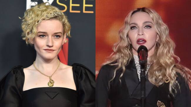 La actriz Julia Garner y la cantante Madona. Fotos: GettyImages.