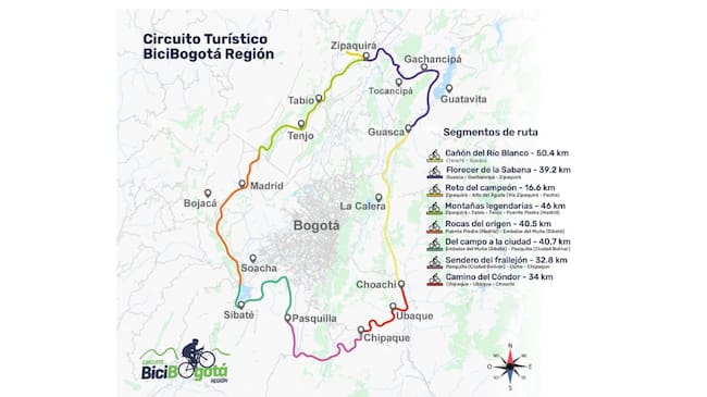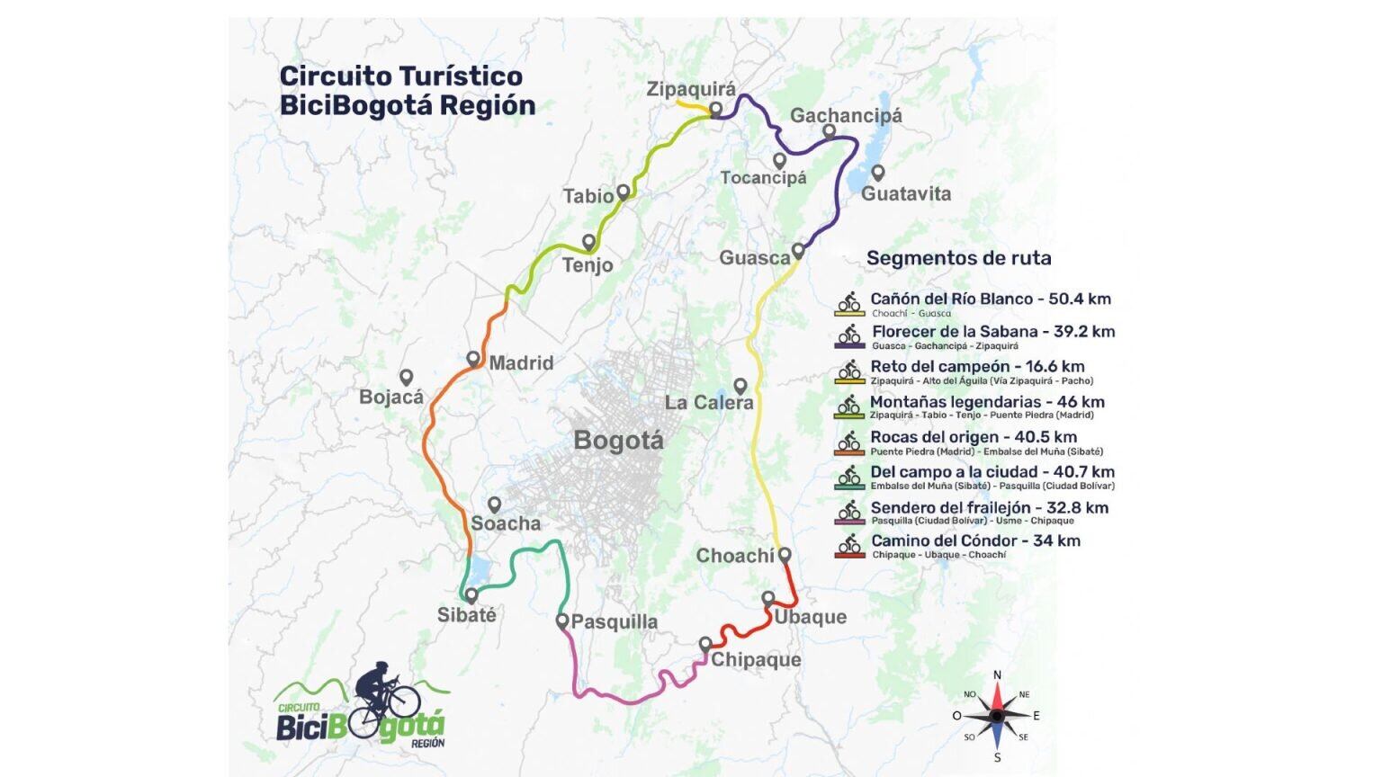Creado con el objetivo de promover el cicloturismo, el circuito está fragmentado en ocho tramos dentro de los cuales se pueden encontrar 42 atractivos turísticos. El ‘Cañón del Río Blanco’ es el tramo más largo: cuenta con 50,4 kilómetros y va desde Choachí hasta Guasca.