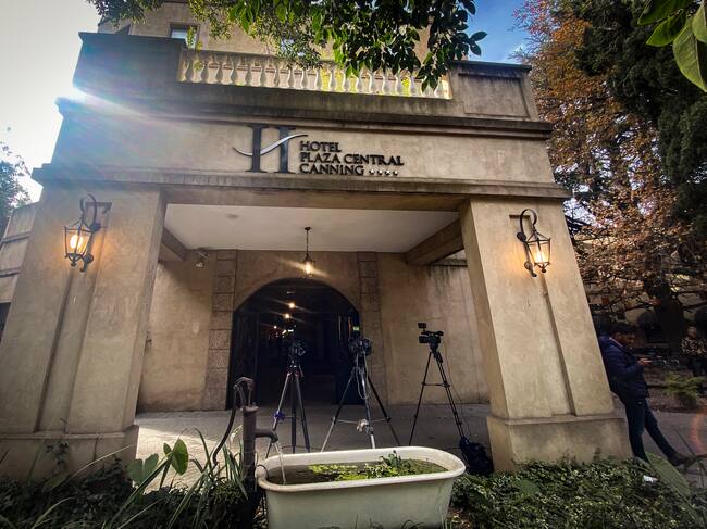 AME6526. EZEIZA (ARGENTINA), 14/06/2022.- Fotografía de la entrada al hotel donde se encuentran los cinco iraníes tripulantes de un avión sancionado por los Estados Unidos, hoy, en la localidad de Canning Ezeiza (Argentina). La Justicia argentina registró este martes el hotel donde se encuentran hospedados los tripulantes que llegaron a Argentina en un avión sancionado por EEUU y decidió impedir la salida de los de nacionalidad venezolana tras retener los pasaportes de los iraníes, en una investigación sobre el vínculo con el terrorismo internacional, según indicaron a Efe fuentes judiciales. EFE/ Juan Ignacio Roncoroni / Juan Ignacio Roncoroni
