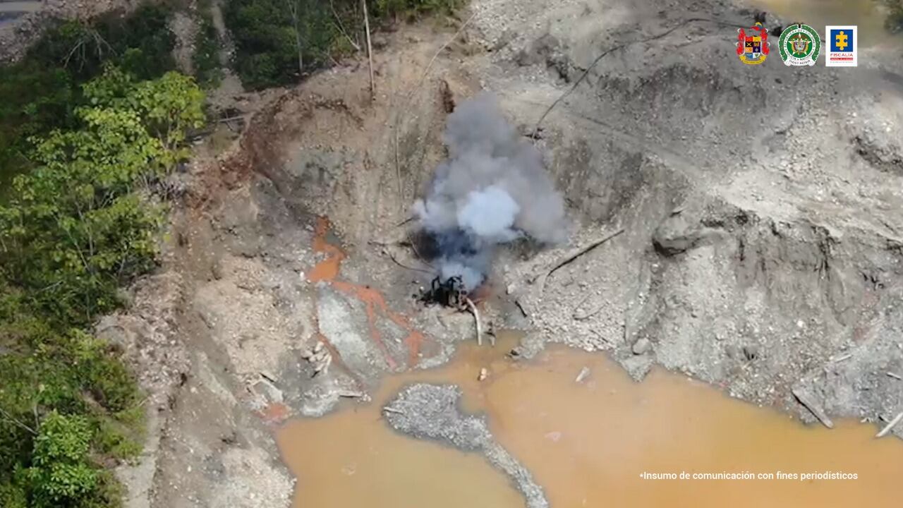 Ocho excavadoras y tres motores de succión, que superan en valor los 2.500 millones de pesos, fueron destruidos de manera controlada. La intervención de un grupo de personas evitó capturar en flagrancia a quienes serían los responsables de afectar este sector del Atrato, un río declarado como sujeto de especial protección, conservación, mantenimiento y restauración.