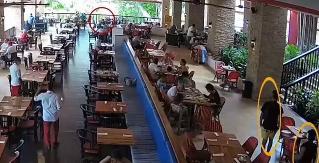 A continuación, fotos del seguimiento que hicieron los delincuentes (círculos amarillos), en el hotel en Barú, al fiscal Marcelo Pecci y su esposa (círculos rojos).