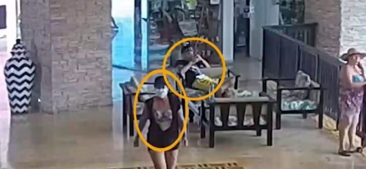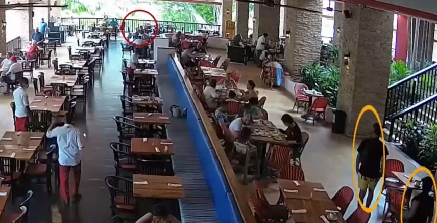A continuación, fotos del seguimiento que hicieron los delincuentes (círculos amarillos), en el hotel en Barú, al fiscal Marcelo Pecci y su esposa (círculos rojos).