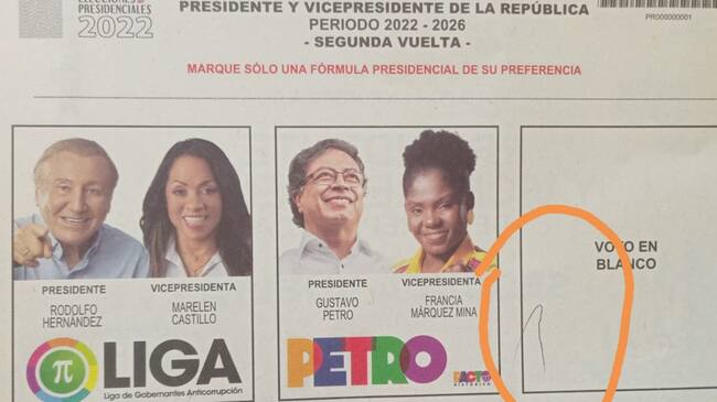 Este domingo 19 de junio, en medio de la jornada electoral para elegir al nuevo presidente en Colombia, usuarios en redes sociales denunciaron que en algunos puestos de votación recibieron unos tarjetones con “marcas extrañas”.