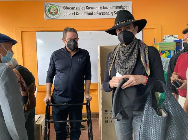 Al puesto de votación llegó en compañía de su esposa, Luz María Zapata, directora ejecutiva de Asocapitales, y con ayuda de un caminador.
